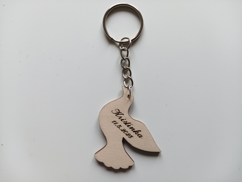 Drevená kľúčenka Holubica – darček / 1. sväté prijímanie