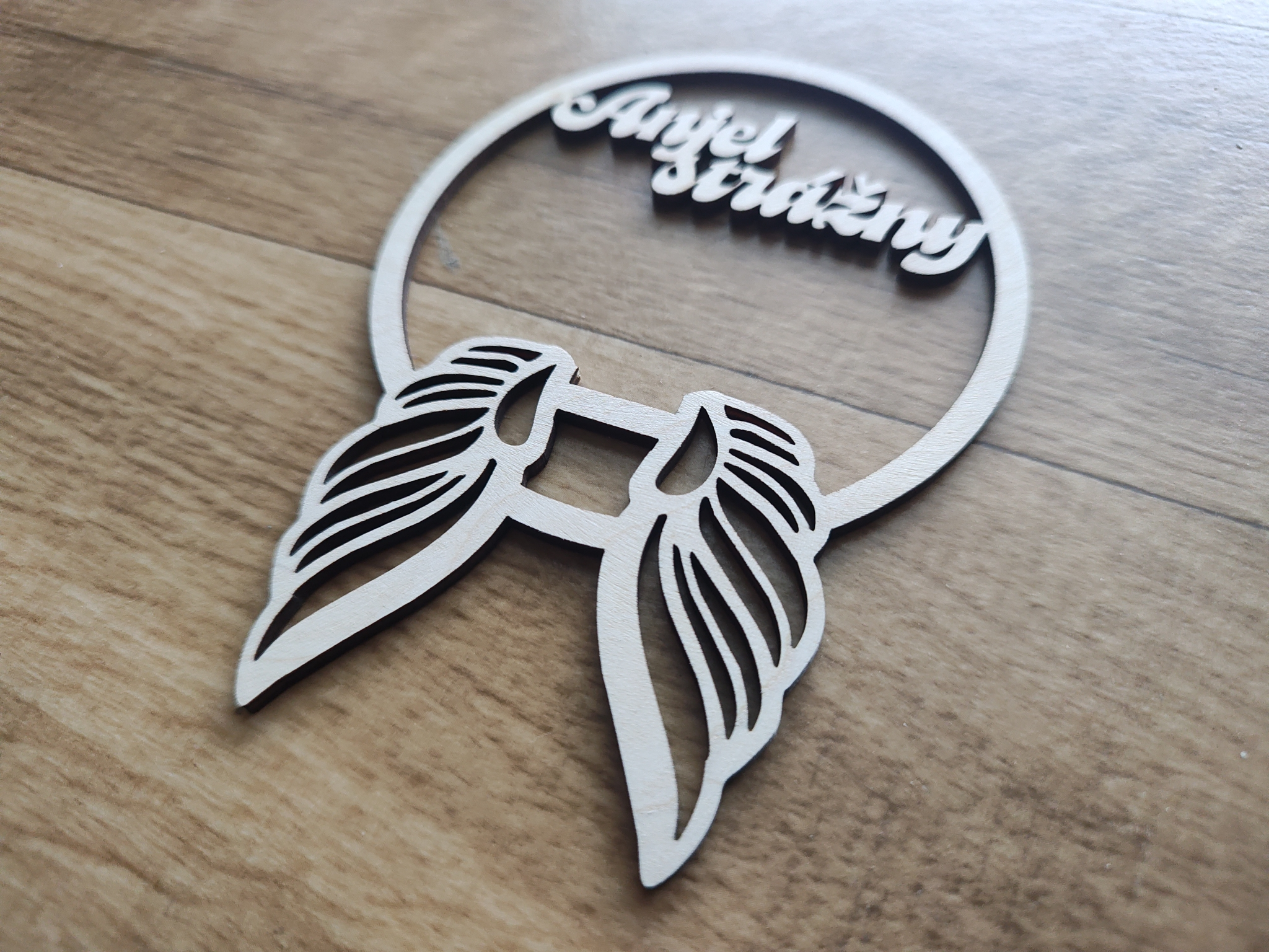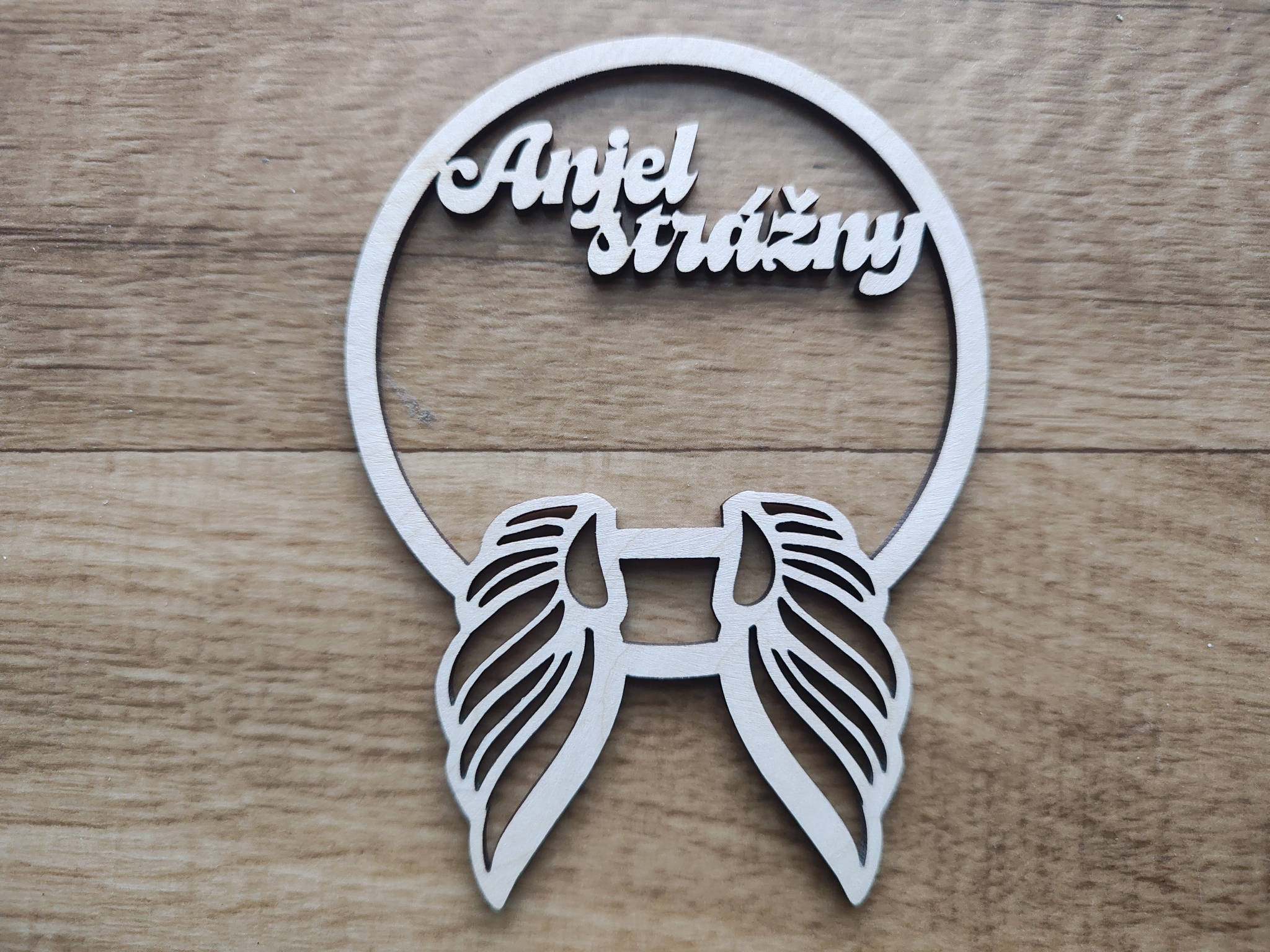 Drevené anjelské krídla s oblúkom a nápisom, vyrobené z brezovej preglejky s hrúbkou 3 mm