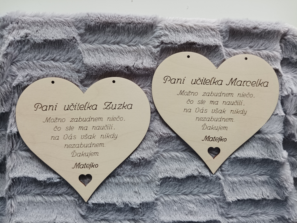 Navštívte náš e-shop a objednajte si vaše vlastné drevené srdiečko na zavesenie ešte dnes! Urobte radosť pani učiteľke a pripravte jej nezabudnuteľný darček, ktorý si zamiluje.