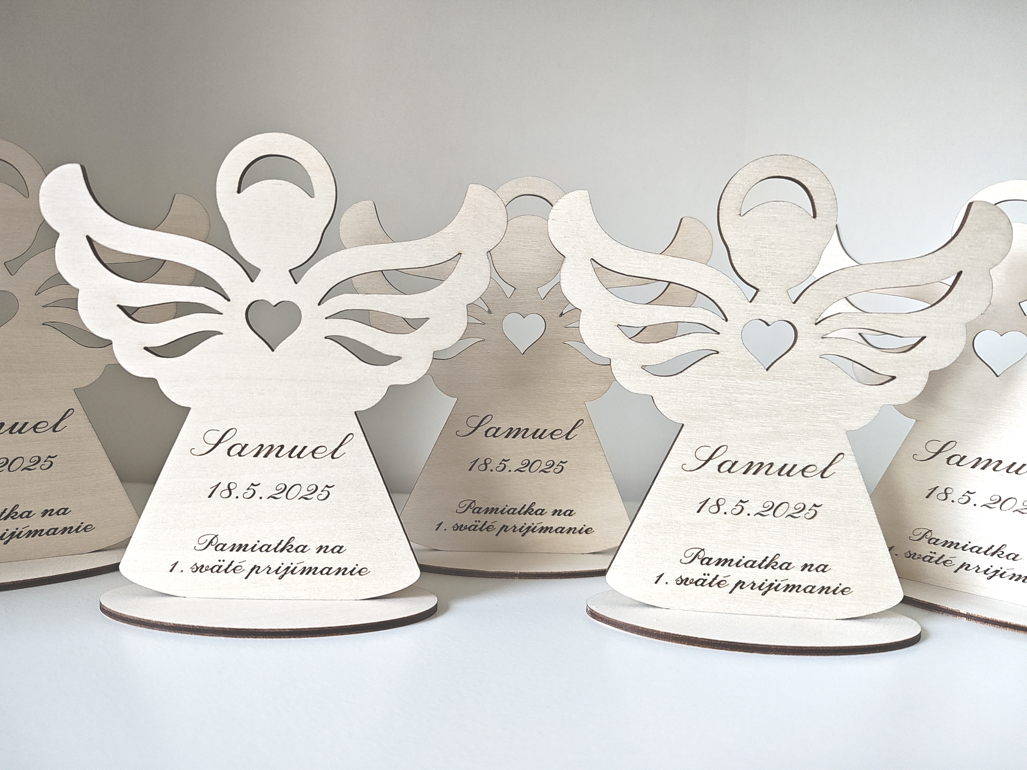 Ako milá pripomienka prijatia sviatosti je náš anjelik s podstavcom ideálnym darčekom na rôzne príležitosti. Tento jedinečný kus sa vyznačuje kvalitným spracovaním z brezovej preglejky a ponúka možnosť personalizácie podľa Vašich želaní.